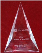 2010年2月,寶利通全球代理商大會在美國圣地亞哥舉辦,直真視通榮獲“Polycom 2009 亞太區(qū)最大集成商”獎(jiǎng)牌。