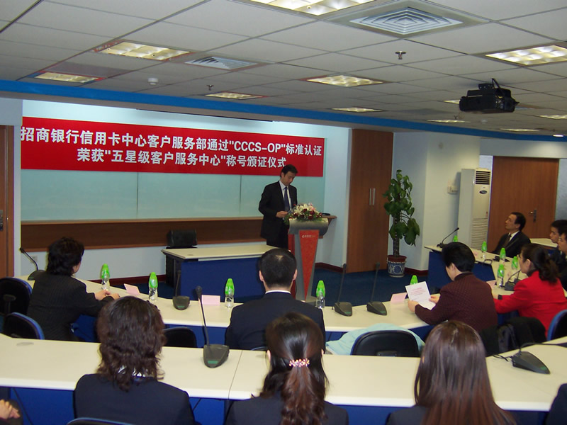 經(jīng)過長(zhǎng)達(dá)8個(gè)月時(shí)間的準(zhǔn)備和嚴(yán)格的認(rèn)證審核,由中國信息化推進(jìn)聯(lián)盟客戶關(guān)系管理專業(yè)委員會(huì)常務(wù)副主任郭晨東先生親自掛帥組成的項(xiàng)目評(píng)審專家小組從領(lǐng)導(dǎo)能力、戰(zhàn)略規(guī)劃與部署、客戶價(jià)值、績(jī)效衡量與分析、現(xiàn)場(chǎng)管理、人員管理、流程管理、運(yùn)營績(jī)效結(jié)果等八個(gè)范疇對(duì)招商銀行信用卡中心客戶服務(wù)部進(jìn)行了全面而嚴(yán)格的審核,涉及五大類上百項(xiàng)詳細(xì)的運(yùn)營績(jī)效指標(biāo),歷經(jīng)初審評(píng)估、現(xiàn)場(chǎng)初審、初審評(píng)估報(bào)告提交與確認(rèn)、標(biāo)準(zhǔn)試運(yùn)行、績(jī)效全面提升、最終評(píng)審等階段,最終審核確認(rèn)招商銀行信用卡中心客戶服務(wù)完全符合并部分超越《全國呼叫中心運(yùn)營績(jī)效標(biāo)準(zhǔn)》(CCCS-OP-2003)的各項(xiàng)標(biāo)準(zhǔn)指標(biāo)和要求,于2005年1月31日正式批準(zhǔn)招商銀行信用卡中心通過該標(biāo)準(zhǔn)的五星級(jí)認(rèn)證,授予“五星級(jí)客戶服務(wù)中心”稱號(hào)。