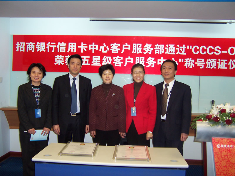這天的上午10點(diǎn)30分,在招商銀行信用卡中心上?偛颗e行了簡(jiǎn)約而隆重的頒證儀式,信用卡中心常務(wù)副總經(jīng)理梁瑤蘭從信息產(chǎn)業(yè)部電子信息中心副主任、中國信息化推進(jìn)聯(lián)盟秘書長(zhǎng)劉獻(xiàn)軍手中接過證書,標(biāo)志著國內(nèi)第一家五星級(jí)客戶服務(wù)中心誕生了!