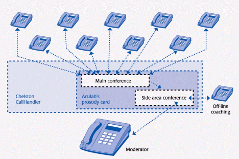 Chelston Call Systems 為RNIB 建立了基于CallHandler-720平臺(tái)、并附有錄音設(shè)施的會(huì)議橋。CallHandler-720是由Aculab Prosody DSP資源板卡集成的,采用開放的架構(gòu)并可通過(guò)萬(wàn)維網(wǎng)進(jìn)行控制。
