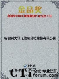 科大訊飛獲“2009中國手機(jī)創(chuàng)新軟件金品獎(jiǎng)十佳”企業(yè)獎(jiǎng)