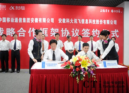 CTI論壇(ctiforum)7月14日消息(記者 張潔):7月11日下午,安徽科大訊飛信息科技股份有限公司與中國移動通信集團安徽有限公司在合肥簽署戰(zhàn)略合作框架協(xié)議。根據(jù)協(xié)議,科大訊飛和安徽移動將在技術(shù)和業(yè)務創(chuàng)新等方面開展深層次合作。