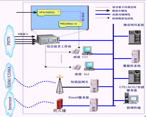 該95598客服系統(tǒng)采用世界知名品牌的Intel Dialogic板卡,構(gòu)建在強(qiáng)大的、開放的CTI應(yīng)用開發(fā)平臺AnyTouch上,開發(fā)出符合縣級供電公司的客戶服務(wù)業(yè)務(wù),并完全根據(jù)《國電95598客戶服務(wù)中心系統(tǒng)規(guī)范》,通過靈活、方便的圖形化開發(fā)工具或接口,與供電公司已有的用電MIS系統(tǒng)緊密結(jié)合,是一套強(qiáng)大的、完整的95598客戶服務(wù)系統(tǒng)。