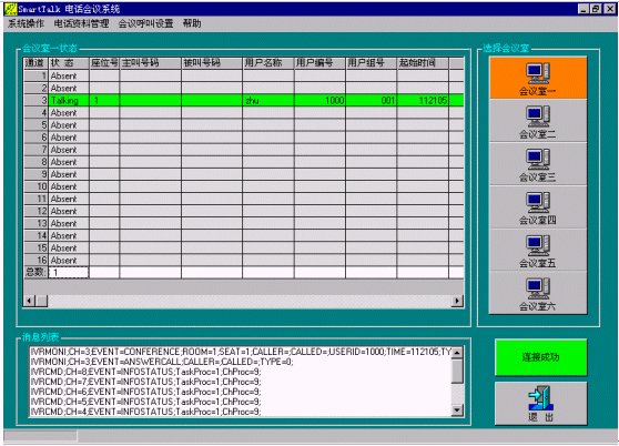 為了突破傳統(tǒng)電話會議系統(tǒng)的功能局限性,降低采用可視電話會議系統(tǒng)的高昻成本,本公司采用先進(jìn)的CTI技術(shù)和設(shè)備,推出了SmarTalk Conference電話會議系統(tǒng),具有超強(qiáng)的會議能力(同時(shí)可建立多個(gè)會議,每個(gè)會議最多同時(shí)可以設(shè)60個(gè)全功能會議座席,會議語音效果清晰流暢),并且利用計(jì)算機(jī)控制技術(shù)使操作變得簡捷、方便,得到用戶一致的好評。同時(shí)用戶可以使用普通電話終端(包括固定電話和移動(dòng)電話)進(jìn)入會議,使用本系統(tǒng)的企業(yè)用戶不需要專用的中心會議室,參加會議的人員可以分布在任一地點(diǎn),極大地方便了會議的召開。