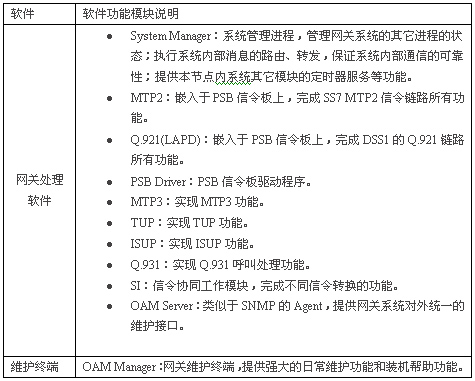 整個(gè)PSG信令轉(zhuǎn)換網(wǎng)關(guān)的軟件由系統(tǒng)支持軟件和網(wǎng)關(guān)處理軟件組成,具體見(jiàn)下表: