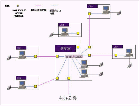 下例示圖是本產(chǎn)品的應(yīng)用實(shí)例。示圖中CS**和調(diào)度室均為現(xiàn)場(chǎng)操作人員工作的控制室。通過調(diào)度室同廠辦公樓實(shí)現(xiàn)網(wǎng)絡(luò)之間的互聯(lián)。每一臺(tái)信號(hào)處理服務(wù)器帶4到8個(gè)攝像頭,主辦公樓內(nèi)在現(xiàn)有的計(jì)算機(jī)上安裝了本公司的遠(yuǎn)程監(jiān)視軟件,實(shí)現(xiàn)了管理人員及廠領(lǐng)導(dǎo)的遠(yuǎn)程監(jiān)視的功能。