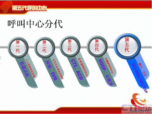 第五代呼叫中心的定義比較簡單,第五代呼叫中心是基于UC的,基于SOA和實時服務(wù)總線技術(shù)的,具備JIT管理思想和作為全業(yè)務(wù)支撐平臺TSP的呼叫中心系統(tǒng)。