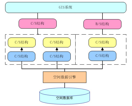 GIS應(yīng)用劃分成基于C/S結(jié)構(gòu)的應(yīng)用和基于B/S結(jié)構(gòu)的應(yīng)用兩種。前一種結(jié)構(gòu)適用于實(shí)現(xiàn)數(shù)據(jù)的采集、入庫(kù)、編輯和復(fù)雜的空間分析、專題制圖等應(yīng)用,主要是面向數(shù)據(jù)維護(hù)人員和專業(yè)分析人員使用的,以及為領(lǐng)導(dǎo)和專家提供輔助決策和分析之用;而后一種結(jié)構(gòu)比較適合于實(shí)現(xiàn)簡(jiǎn)單的地圖發(fā)布、空間查詢等應(yīng)用,主要面向的是廣大的Internet用戶。由于這兩種結(jié)構(gòu)各有優(yōu)缺點(diǎn),而從指揮中心的總體角度來(lái)看,兩種結(jié)構(gòu)的應(yīng)用都是不可缺少的。系統(tǒng)的總體結(jié)構(gòu)將是一個(gè)同時(shí)包含了C/S和B/S兩種結(jié)構(gòu)的混合型、綜合型結(jié)構(gòu)。系統(tǒng)結(jié)構(gòu)如下:
