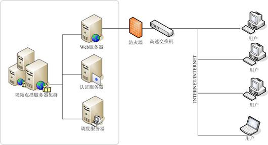 客戶可以通過訪問放置在甘肅省移動公司面機(jī)房內(nèi)的Web服務(wù)器,同時WEB服務(wù)器發(fā)送請求到認(rèn)證服務(wù)器,通過客戶AAA級認(rèn)證后的,客戶經(jīng)過調(diào)度服務(wù)器將請求反饋給視頻服務(wù)器,完成視頻點(diǎn)播流程,具體架構(gòu)如圖。