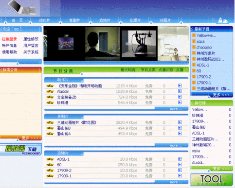 隨著互聯(lián)網(wǎng)在中國(guó)的普及和網(wǎng)絡(luò)基礎(chǔ)建設(shè)的完善,越來(lái)越多的人開(kāi)始上網(wǎng),隨之而來(lái)的就是各種網(wǎng)絡(luò)服務(wù)的大行其道,我們就來(lái)看看最近很火的網(wǎng)絡(luò)視頻點(diǎn)播VOD。領(lǐng)導(dǎo)下命令,對(duì)目前視頻點(diǎn)播產(chǎn)品做一個(gè)評(píng)估,沒(méi)有辦法,只有照辦。既然要評(píng)論自然要找最好的來(lái)感受一下。南京遠(yuǎn)古的Web VOD5.0。在技術(shù)上較為領(lǐng)先,根據(jù)南京遠(yuǎn)古官方宣布,該系統(tǒng)可以達(dá)到1000并發(fā)。十分好奇,終于托人找到了體驗(yàn)版本。