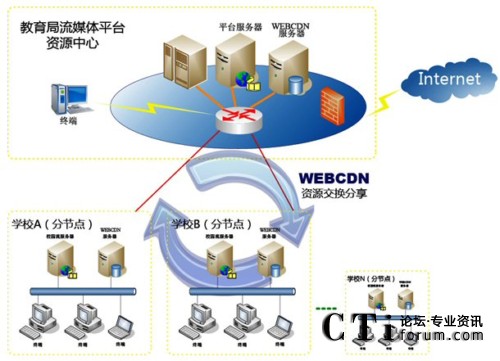 圖:VIEWGOOD WEBCDN流媒體多節(jié)點綜合管理應(yīng)用平臺教育解決方案應(yīng)用拓?fù)鋱D