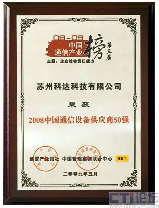 2009中國通信產(chǎn)業(yè)榜 科達入圍“2008中國通信設(shè)備供應(yīng)商50強”