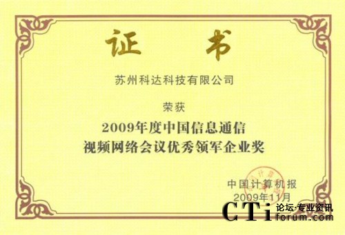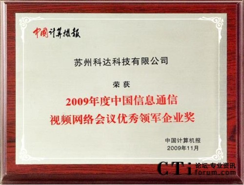 科達獲中國信息通信視頻網(wǎng)絡(luò)會議優(yōu)秀領(lǐng)軍企業(yè)獎