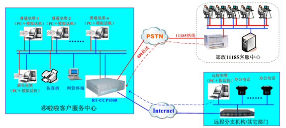 IP分布式特點:對于莎啦啦這樣一個企業(yè)級客戶而言,呼叫中心只是企業(yè)的一個部門,這個部門需要與企業(yè)的其他部門協(xié)同工作,才能最大限度的發(fā)揮呼叫中心的作用。這就要求莎啦啦所部署的呼叫中心系統(tǒng)具備極為便捷的擴展能力,在需要其他部門響應客戶服務時,能夠將其他部門的相關人員立即升級為更專業(yè)的二線坐席來協(xié)同處理。而傳統(tǒng)的呼叫中心系統(tǒng)中,在需要協(xié)同服務時,臨時部署二線坐席或者辦公電話,顯然是不可能的,而為其他部門設立專家坐席,對于資金有限的企業(yè)而言,其成本和收益往往又不成比例。那么基于IP的技術則可以非常輕松的解決這一矛盾。RT-CCP1000自帶的免費軟電話,能夠通過標準的SIP或者H.323協(xié)議和局域網(wǎng)使莎啦啦的任何專業(yè)人員可以立即加入到整個呼叫中心系統(tǒng)坐席組中。