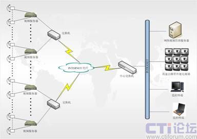 本系統(tǒng)網(wǎng)絡(luò)傳輸采用有線(xiàn)、光纖及無(wú)線(xiàn)相結(jié)合的方式,在有條件的地方采用有線(xiàn)的方式,傳輸距離較遠(yuǎn)時(shí)采用光纖傳輸,在布線(xiàn)比較困難的情況下采用無(wú)線(xiàn)傳輸?shù)姆绞健?br />