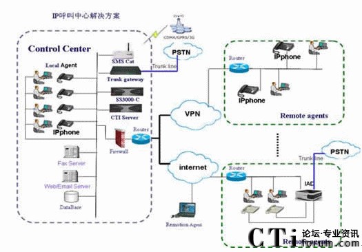 “服務中心網絡化”——充分利用IP話機的靈活移動和免費特點,服務中心的人工坐席可以靈活設置;