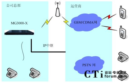 4、公司員工在公司外部時(shí),可以用手機(jī)通過撥打公司“移動(dòng)”總機(jī),再通過IP中繼,撥打目的固定電話號(hào)碼或者移動(dòng)電話號(hào)碼。即間接的把話務(wù)轉(zhuǎn)移到了IP中繼呼出上,在一定程度上節(jié)省了通話費(fèi)用。