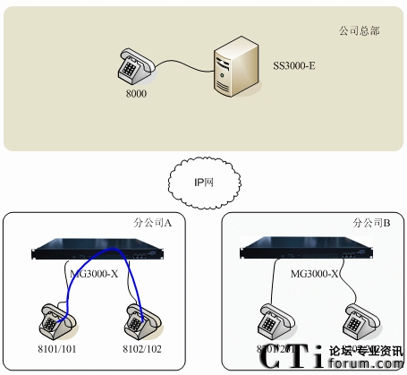 - 分公司的分機(jī)仍然具有總公司統(tǒng)一編排的號(hào)碼,例如分公司A的8101和8102,使用習(xí)慣可以不變;