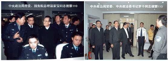 2003年公安部長(zhǎng)周永康視察鄭州公安局時(shí),對(duì)鄭州市公安局在綜合應(yīng)急通信指揮系統(tǒng)平臺(tái)的技術(shù)和業(yè)務(wù)模式的創(chuàng)新,進(jìn)一步提高了鄭州公安部門(mén)對(duì)突發(fā)事件綜合、快速、準(zhǔn)確的處置能力表示滿意;而后中央政治局常委、國(guó)務(wù)院總理溫家寶同志,中央政治局常委、中央政法委書(shū)記羅干同志、國(guó)務(wù)院秘書(shū)長(zhǎng)華建敏同志均視察了鄭州市公安局,并對(duì)其"三臺(tái)合一"給予了充分肯定。