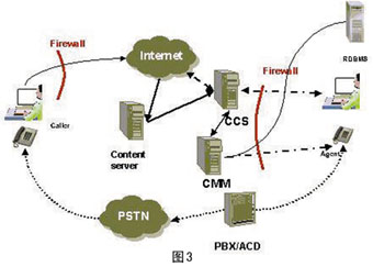 ----其中,客戶可訪問公司的Web站點獲取信息;客戶需要“個人”幫助并選擇“Call Me”按鈕,該幫助請求將路由至CCS;CMM根據(jù)路由規(guī)則設(shè)定,將請求路由至代理或代理組。