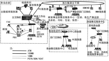 另外,海爾集團(tuán)電話中心原有的顧客服務(wù)系統(tǒng)屬于第二代Call Center 系統(tǒng),話務(wù)員的工作量較大,服務(wù)功能受到很大的限制,特別是客戶信息及時(shí)收集的速度受到影響。為了滿足對(duì)市場(chǎng)快速響應(yīng)的需要,海爾集團(tuán)決定建立具有智能功能(如ACD:自動(dòng)呼叫分配)的第三代呼叫中心,采用第三代具有ACD技術(shù)(如來(lái)電主叫號(hào)碼自動(dòng)顯示、呼叫轉(zhuǎn)移、自動(dòng)回?fù)艿龋┑暮艚兄行,向客戶提供更個(gè)性化的服務(wù)。