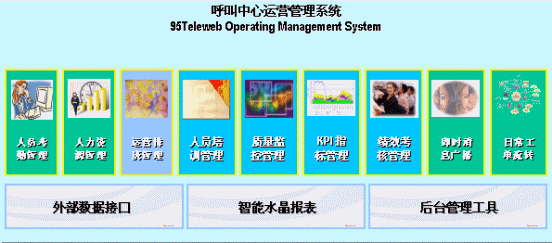Teleweb-OMS運營管理系統(tǒng)共有11個模塊,涵蓋了動態(tài)質檢管理、培訓管理、考勤管理、人力資源管理、話務預測與自動排班、KPI管理、績效考核、部門間的需求單管理等各個環(huán)節(jié),并且提供了外部數(shù)據(jù)抽取功能和報表自動生成功能。