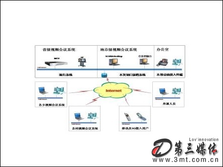 此外,為保證外出領(lǐng)導(dǎo)或員工不會(huì)錯(cuò)過任何一次重要會(huì)議,該套系統(tǒng)需要支持與普通電話、手機(jī)等語(yǔ)音終端的實(shí)時(shí)接入,而專網(wǎng)外計(jì)算機(jī)桌面終端地接入,可保證外出的干部能夠通過普通計(jì)算機(jī)參加重要會(huì)議或培訓(xùn)。該平臺(tái)還要能夠通過升級(jí)支持3G技術(shù)的接入,從而使整套系統(tǒng)能夠順應(yīng)未來(lái)通訊技術(shù)的發(fā)展。