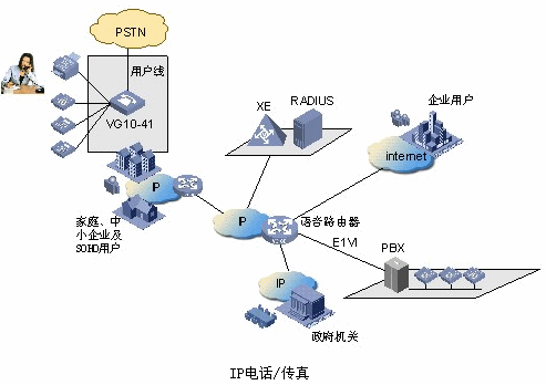 - 用戶通過VG 語音網(wǎng)關(guān)不僅可以接入到寬帶城域網(wǎng)上,而且還可以經(jīng)過Internet和國際用戶進行IP電話/傳真通訊。