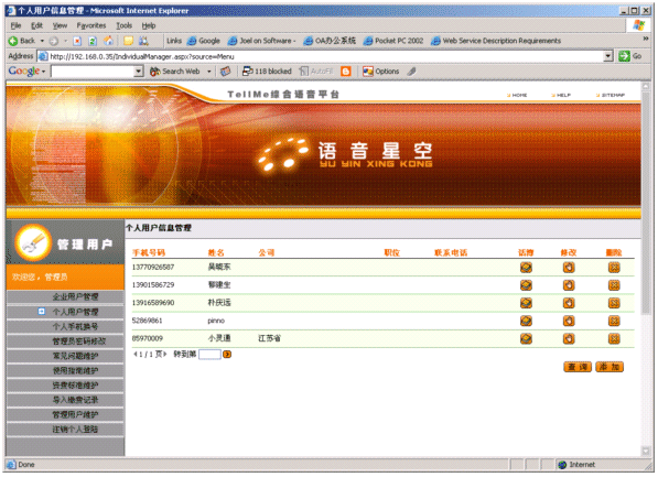 結(jié)合平臺(tái)座席與個(gè)人語(yǔ)音電話本實(shí)現(xiàn)給注冊(cè)用戶實(shí)現(xiàn)個(gè)人秘書(shū)服務(wù)。