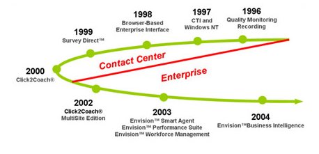 美國Envision公司所提供之Call Center Performance Suite“呼叫中心智慧運營效能最佳化解決方案”,提供最簡便操作,實用經(jīng)濟效益完整之解決方案,其方案涵蓋:錄音(錄影)系統(tǒng)、 質(zhì)量管理系統(tǒng)、e-Learning系統(tǒng)、KPI績效衡量系統(tǒng)、人力資源規(guī)劃與管理系統(tǒng),是歐美呼叫中心提升服務品質(zhì)管理、人力資源與成本管理、教育訓練管理、KPI績效衡量的重要合作伙伴,無疑是新一代的完整之解決方案供應商,對客戶的投資提供最佳的保障。