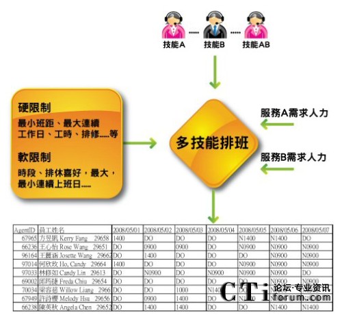 在實施人資優(yōu)化軟件之后,呼叫中心即可開始對各服務人力作"量"與"質(zhì)"的管理,確定資源做最佳運用,如下圖所示:
