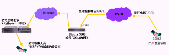 直接使用多模擬中繼線和模擬用戶線的網(wǎng)關(guān),將該網(wǎng)關(guān)通過Internet注冊到IPPBX上。這樣您既可以撥打原有的PSTN電話,又可以撥打VoIP電話。