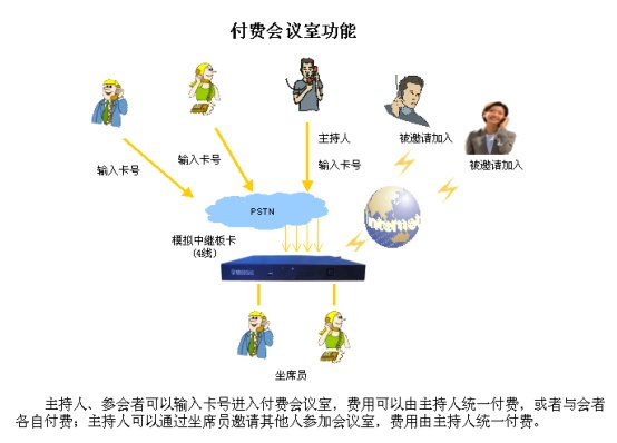 IPPBX的付費(fèi)會議室適合虛擬運(yùn)營商或者系統(tǒng)集成商,能為企業(yè)提供付費(fèi)會議室的專業(yè)服務(wù)。適用于解決企業(yè)的商務(wù)問題的快速決議,公司例會的定期召開,突發(fā)問題的快速處理,以及企業(yè)員工的全面培訓(xùn)。還可以廣泛應(yīng)用于行政會議、遠(yuǎn)程教育、商務(wù)會談、遠(yuǎn)程醫(yī)療、應(yīng)急通信、聊天等方面,具有廣闊的市場前景。