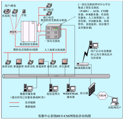 HYT-CCS采用軟硬件高度集成的一體化交換機(jī)作為基礎(chǔ)平臺(tái),提供了可視化的IVR開發(fā)環(huán)境以及豐富的示例語(yǔ)音流程、模板化的人工座席軟件、模板化的統(tǒng)計(jì)報(bào)表軟件;通過這個(gè)一體化交換機(jī)的CTI平臺(tái)產(chǎn)品,可以快速、靈活地構(gòu)建和開通企業(yè)/政府部門呼叫中心系統(tǒng)/客戶服務(wù)中心系統(tǒng),是企業(yè)/政府部門實(shí)現(xiàn)語(yǔ)音增值業(yè)務(wù),提升客戶服務(wù)品質(zhì)與建設(shè)呼叫中心系統(tǒng)的最佳CTI一體化軟硬件平臺(tái)產(chǎn)品。