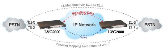 TDM隧道利用LVG 2000內(nèi)部的路由功能(不需要網(wǎng)守或MGC控制)從TDM (1 to 16 E1/T1/J1)或單獨時隙接收語音和數(shù)據(jù)流,轉(zhuǎn)換為在IP網(wǎng)絡上傳輸?shù)臄?shù)據(jù)。