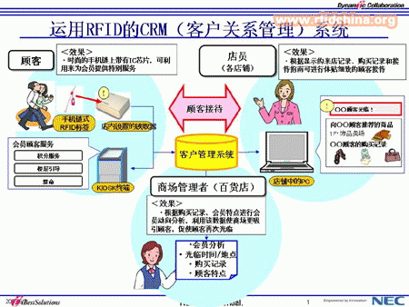使用電子標簽(RFID)技術(shù),構(gòu)筑尖端客戶關(guān)系管理(CRM)系統(tǒng),提高百貨公司顧客來店數(shù)量及銷售額。