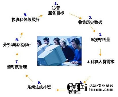 Impact 360 WFM提供一整套的集成排班管理應(yīng)用程序,幫助呼叫中心在三個(gè)關(guān)鍵并且時(shí)常是沖突的要素之間作出優(yōu)化。他們是:客戶的滿意度、員工的的滿意度與穩(wěn)定性,以及運(yùn)營(yíng)的成本。在排班管理過(guò)程中,WFM采用如下基本流程: