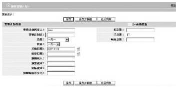 營銷計(jì)劃管理功能可以讓用戶跟蹤每個(gè)營銷計(jì)劃已生成的業(yè)務(wù)機(jī)會量。當(dāng)創(chuàng)建業(yè)務(wù)機(jī)會時(shí),用戶可以在營銷計(jì)劃來源字段中填入相關(guān)信息,以表明該業(yè)務(wù)機(jī)會是由營銷計(jì)劃生成的,從而檢驗(yàn)、評定每個(gè)營銷計(jì)劃的執(zhí)行效率。