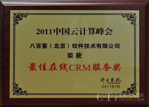 云計算峰會:八百客榮膺“最佳在線CRM服務獎”
