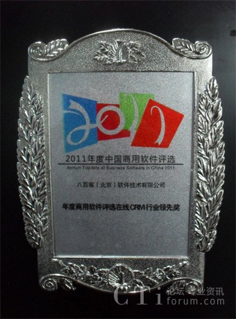 CTI論壇(ctiforum)12月20日消息(記者 張潔): 12月9日,以“模式創(chuàng)新帶動(dòng)產(chǎn)業(yè)及應(yīng)用轉(zhuǎn)型”為主題的“信息化領(lǐng)袖峰會(huì)暨商用軟件評(píng)選頒獎(jiǎng)大會(huì)”在上海隆重舉行。本次大會(huì)分四個(gè)環(huán)節(jié)進(jìn)行,其中最重要的環(huán)節(jié)莫過(guò)于揭曉“2011年度中國(guó)商用軟件評(píng)選”結(jié)果,作為全球領(lǐng)先的企業(yè)管理軟件供應(yīng)商八百客(www.800app.com)成功斬獲2011年度中國(guó)商用軟件評(píng)選“在線CRM行業(yè)領(lǐng)先獎(jiǎng)”。同時(shí),八百客的三位企業(yè)用戶美國(guó)宣偉涂料公司的潘總、上海企盈投資管理有限公司的何總、華圖教育的王總分別獲得 “2011年度信息化貢獻(xiàn)人物獎(jiǎng)”大獎(jiǎng)。