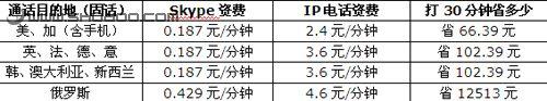 3G手機(jī)用Skype和固定電話通話的資費(fèi)與傳統(tǒng)IP電話相比如何呢?見下表: