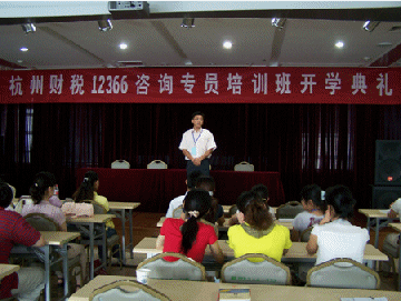 圖為杭州財稅12366咨詢專員培訓班開學典禮上杭州財稅局人事處領(lǐng)導講話