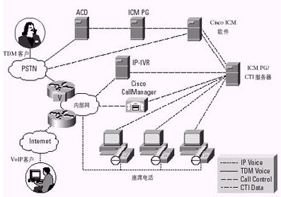 通過一個容納了ACD、IVR、Web和電子郵件服務器、桌面應用以及其他內容的計劃,Cisco ICM軟件使公司能夠利用Internet或PSTN實現與客戶的交互。