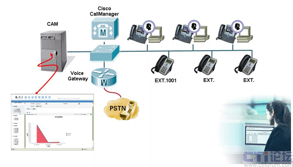 通過與Cisco 統(tǒng)一通信管理器(Cisco Communcation Manager)的無縫整合,CAM可以為企業(yè)提供相關(guān)語音通信的話務(wù)統(tǒng)計、呼叫計費、流量分析等功能。通過簡單的報表生成使用戶可以方便、及時的對整個企業(yè)的通訊情況進行分析,從而有效的對通訊資源進行管理、控制并防止通信資源浪費。