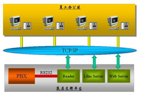 系統(tǒng)構(gòu)造基于Web/Brower方式,每個(gè)員工端無需安裝任何軟件,只需通過啟動(dòng)IE,輸入您的分機(jī)號(hào)便可方便地選擇自己當(dāng)天的工作位置。