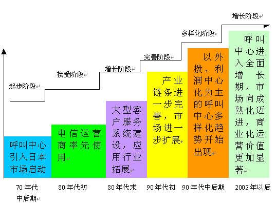 日本市場(chǎng)是全球較為成熟的呼叫中心市場(chǎng)之一,呼叫中心的應(yīng)用遍布各行各業(yè)。在整體呼叫中心行業(yè)產(chǎn)生的市場(chǎng)價(jià)值中,由呼叫中心外撥直接產(chǎn)生的占1/4強(qiáng),50%的呼叫中心配備了專用外撥設(shè)備。這說(shuō)明呼叫中心已完全脫離了服務(wù)窗口的概念,成為了企業(yè)營(yíng)銷的有力工具,呼叫中心已高度利潤(rùn)中心化。