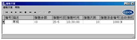 催繳時(shí)間:開(kāi)始啟動(dòng)催繳的時(shí)間,該時(shí)間只是要求啟動(dòng)的時(shí)間,如果此時(shí)沒(méi)有空閑語(yǔ)音線(xiàn)路,則會(huì)等待空閑后才真正開(kāi)始。