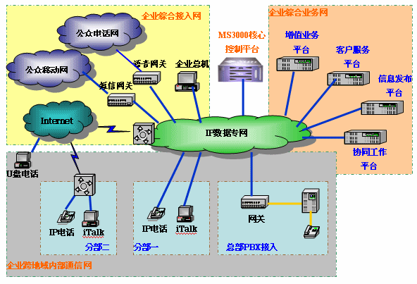 單一的電話通信方式已經(jīng)遠(yuǎn)遠(yuǎn)不能滿足現(xiàn)代企業(yè)(包括行業(yè)、政府機(jī)關(guān))在通信方面的需求,隨著IP網(wǎng)絡(luò)的不斷普及、新的通信技術(shù)的不斷發(fā)展,“多媒體協(xié)同通信”一個(gè)新的通信概念已經(jīng)展現(xiàn)在我們的面前。我們需要跨地域的內(nèi)部電話,我們需要廉價(jià)的IP長(zhǎng)途,我們同樣需要通信服務(wù)平臺(tái)、信息發(fā)布平臺(tái),我們還需要工作協(xié)同、信息共享。“多媒體協(xié)同通信”就能滿足我們這些需要。