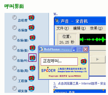 WCS3050主要提供Web點(diǎn)擊呼叫功能,當(dāng)用戶在瀏覽企業(yè)網(wǎng)站或網(wǎng)絡(luò)廣告的時(shí)候,通過點(diǎn)擊該企業(yè)的聯(lián)系電話,甚至企業(yè)標(biāo)識(shí)等其它標(biāo)志,直接下載安裝特定的控件后就可以通過電腦打電話到該企業(yè)服務(wù)中心,大大方便了用戶對企業(yè)及其產(chǎn)品的進(jìn)一步了解,更加促進(jìn)了企業(yè)的市場銷售和宣傳。