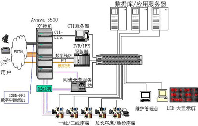 交換機(jī)/排隊(duì)機(jī):選用AVAYA的S8500交換機(jī)作為前端排隊(duì)設(shè)備。